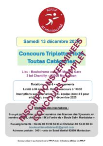 Le comité de pilotage de la Coupe de France a retenu la candidature de Montauban pour recevoir le week-end du 31 janvier et 1er février les 32ème, 16ème et 8ème de finale de la Coupe de France pétanque 2025 /2026.