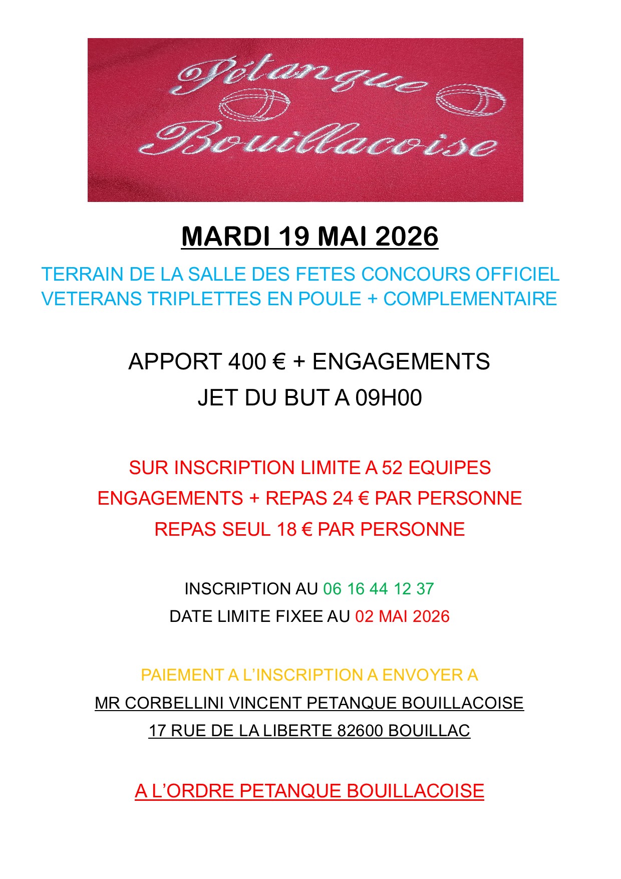 Le dimanche 15 mars 2026 au boulodrome du Marché Gare.